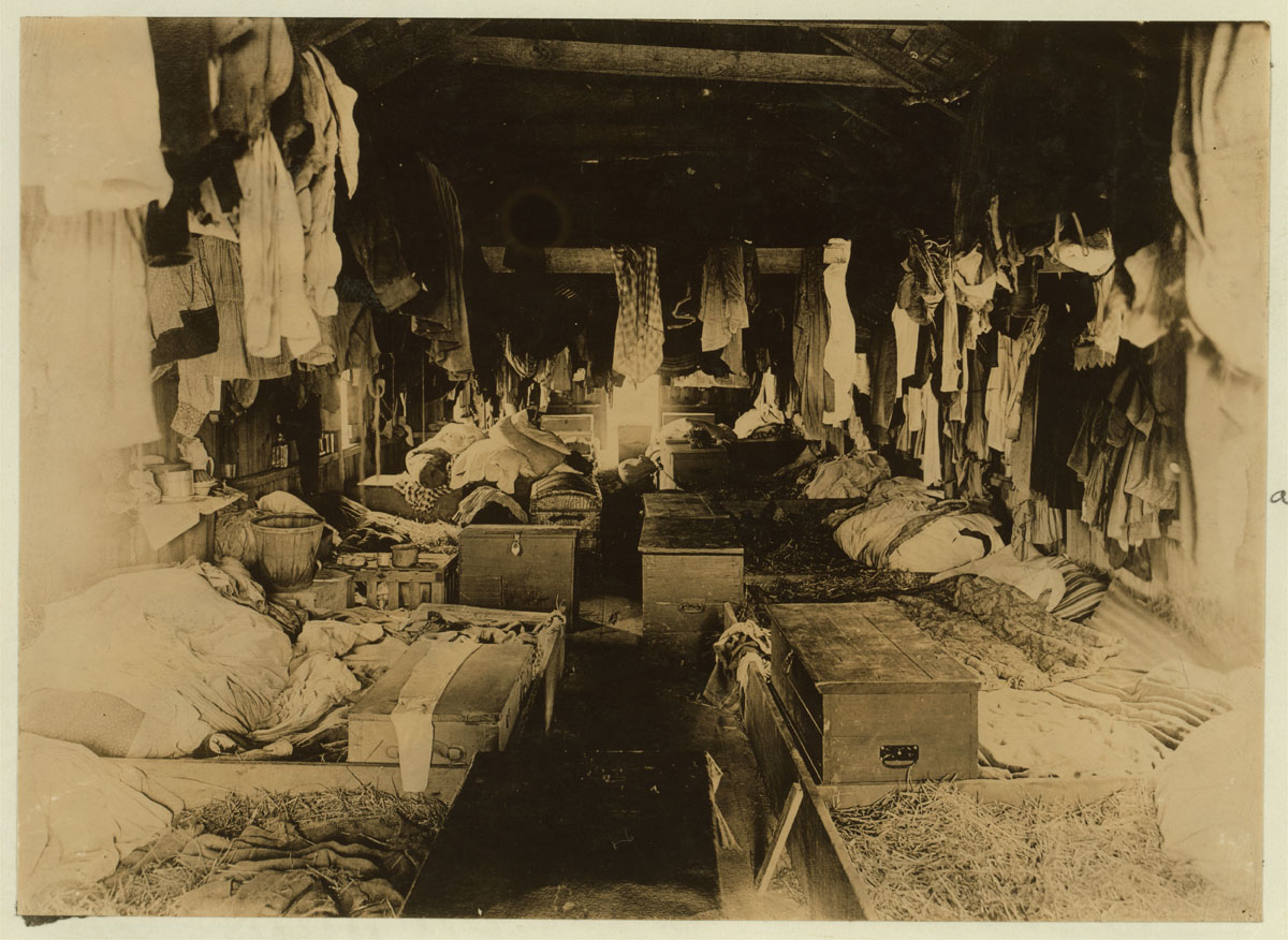 - Interior of a shack occupied by berry pickers. Anne Arundel County., Maryland. Courtesy of Maryland Child Labor Committee. Location: Anne Arundel County, Maryland. Circa 1909. (Lewis Hine/Photo courtesy LOC)