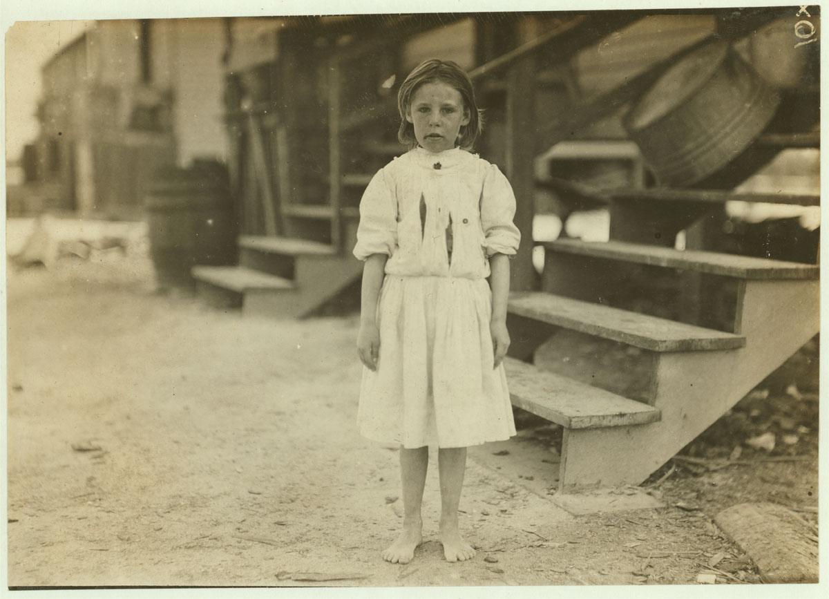 - Annie Delcher, eight-year-old oyster shucker from Baltimore. Location: Dunbar, Louisiana. 1911 March. (Lewis Hine/Photo courtesy LOC)